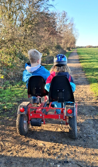 Schnappen Sie sich eins der vielen Fahrzeuge und drehen Sie entweder in der Scheune oder im Dorf eine Runde. Das macht riesigen Spaß - nicht nur den Kindern. In der Scheune parken Fahrzeuge für Kleine & Große. Es ist für jeden was dabei. Lust auf eine Runde Hobby horsing? Dann schnell eins der Steckenponys holen und losreiten.