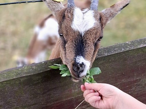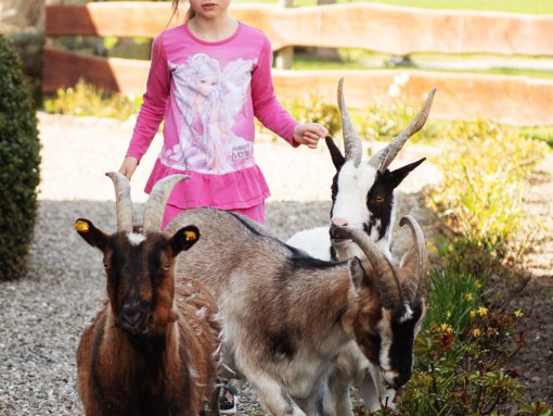 Unsere Ziegen Moritz, Karla und Martha lieben nicht nur von den Kindern gepflückte Gänseblümchen. Sie wollen auch gern gestreichelt werden. Aber Achtung, wenn Moritz zu lange gestreichelt wird, schläft er schon einmal lächelnd dabei ein. Trauen Sie sich und staunen Sie, wie entspannend eine Ziegenmassage sein kann.